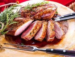 Ćwiartka kaczki, kluski śląskie, modra kapusta -