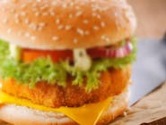 sos słodko-pikantny, kurczak grillowany, panierowany camembert, pomidor, płatki chilli, sałata -